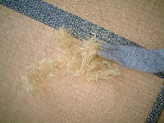 グレース用マフラーの片方のぼんぼりがズタズタになっている。